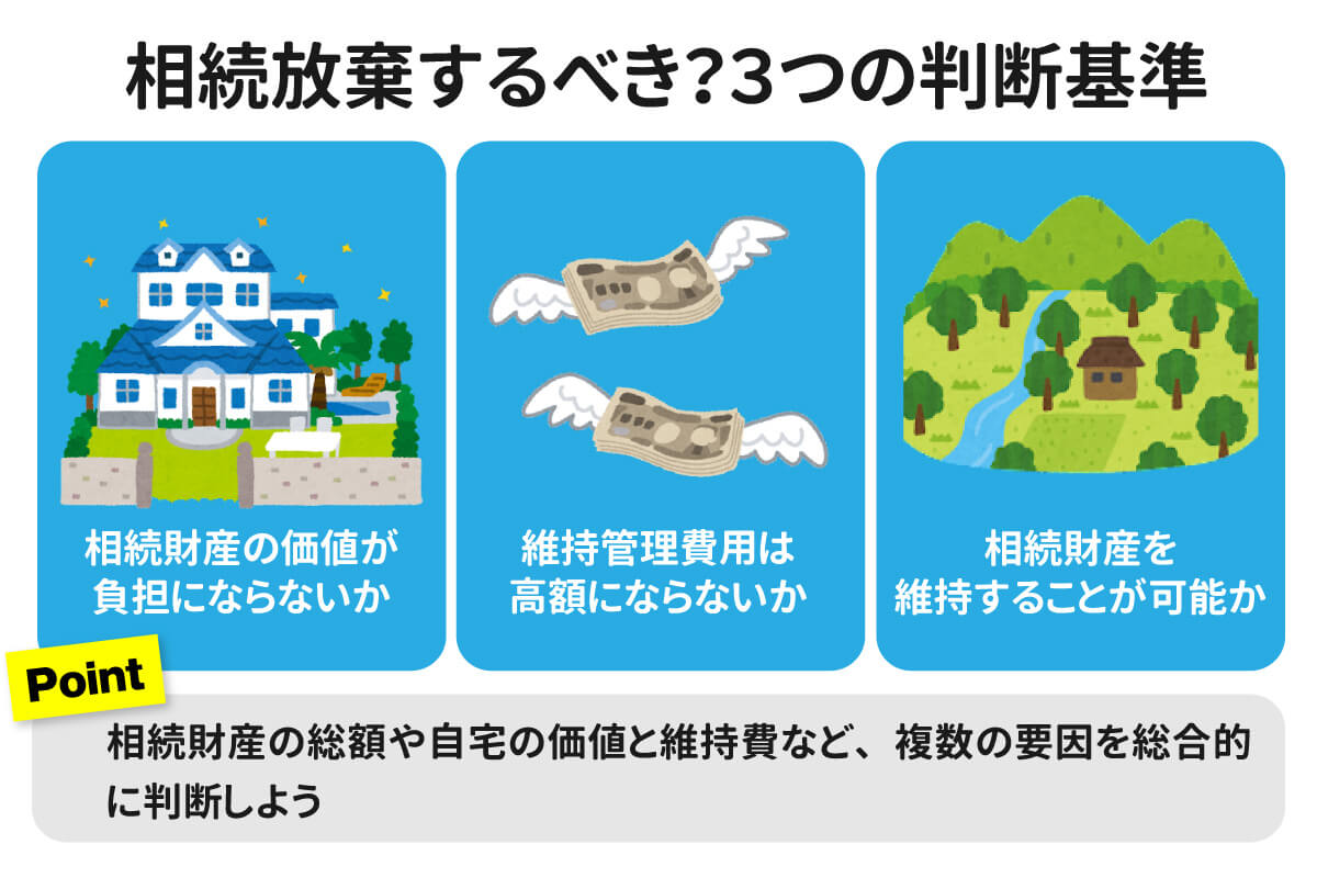 こちらのパートでは、自宅の相続放棄を検討する際の基準を3つにわけて解説していきます。