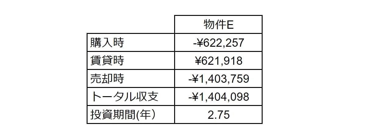 こちらのパートでは、物件Eのトータル収支がマイナスになった理由を分析していきます。141万の損を出した理由をしっかりとご理解ください