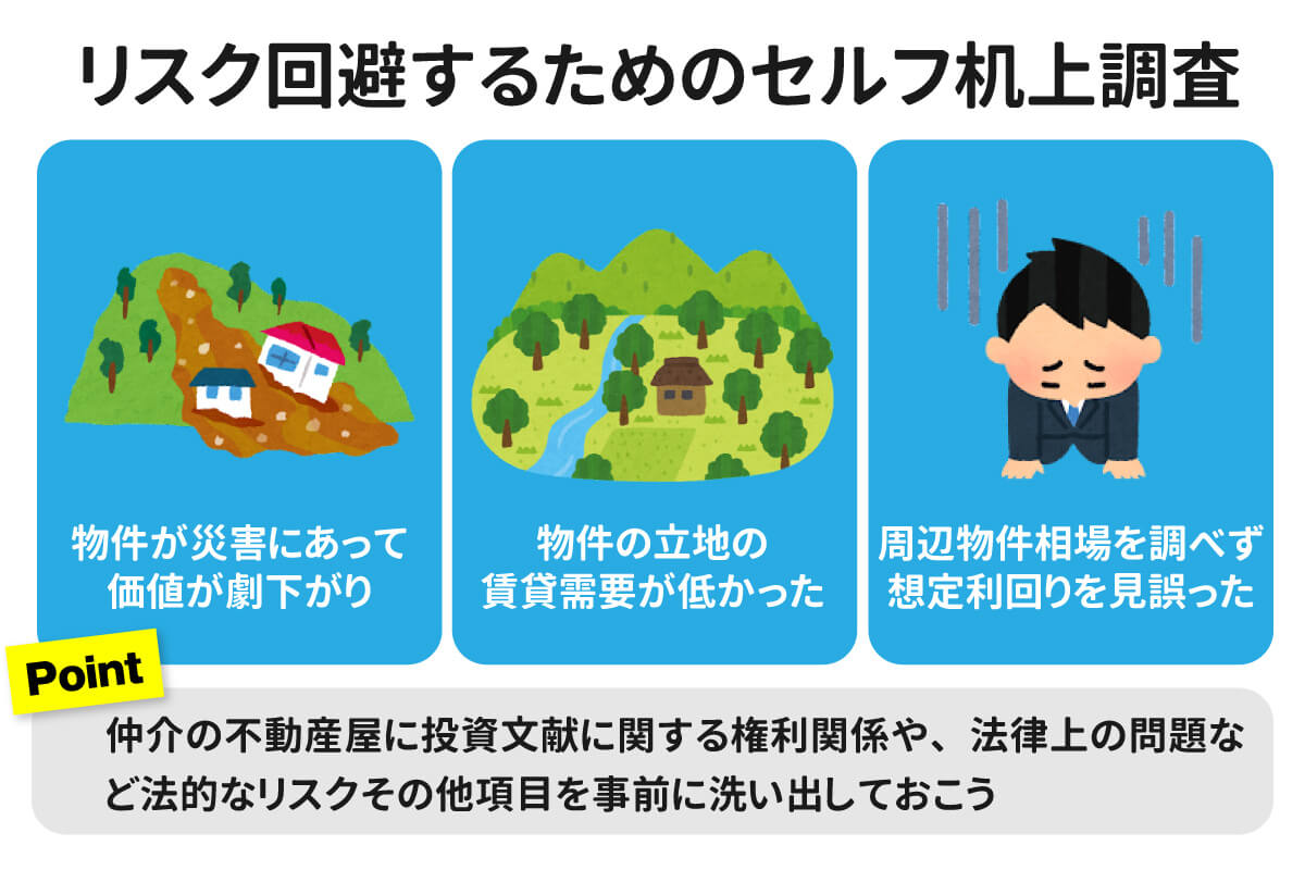 こちらのパートでは、不動産投資でリスク回避するためのセルフ机上調査の重要性について解説していきます。