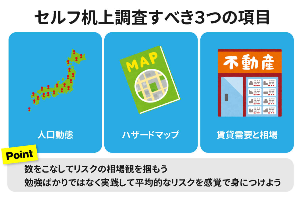 不動産投資でリスク回避するためにセルフ机上調査すべき3つの項目